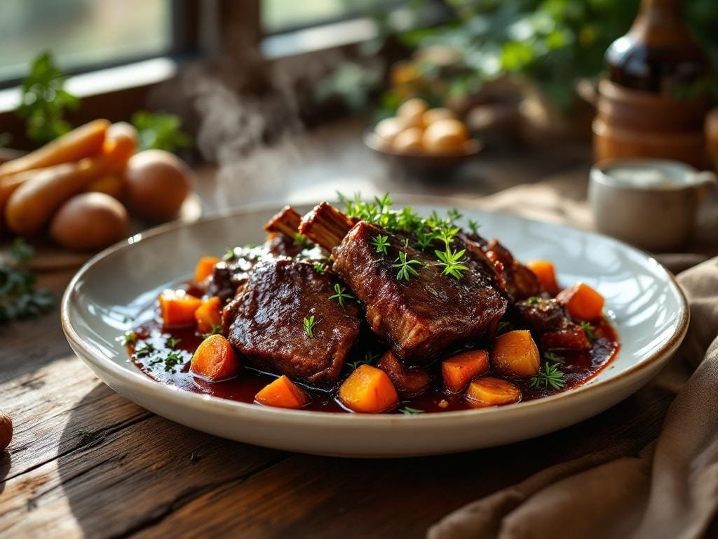 Imagine a cozy evening in, the whole house filled with the irresistible aroma of rich red wine, garlic, and herbs simmering together in the oven. These red wine-braised short ribs are pure comfort with a touch of elegance—just the kind of dish that makes you feel like you’ve pulled off something fancy, without needing a culinary degree or a zillion ingredients.