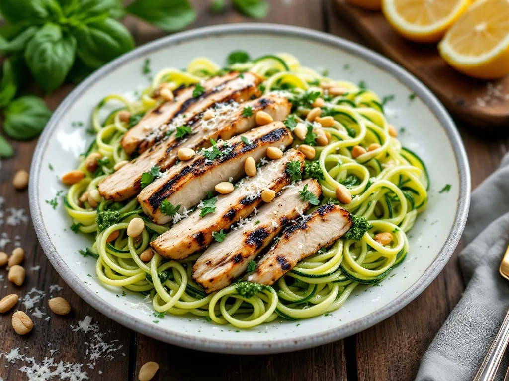 There’s something magical about the combination of fresh zucchini noodles, vibrant basil pesto, and juicy grilled chicken. It’s light yet