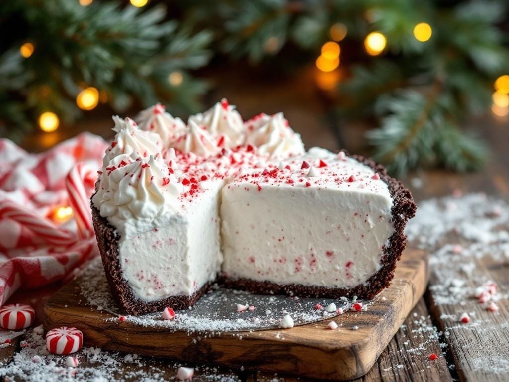 - Decorate and serve: Just before serving, add a swirl of extra whipped cream, sprinkle with more crushed candy canes, and drizzle with melted chocolate if desired. Slice and serve chilled!