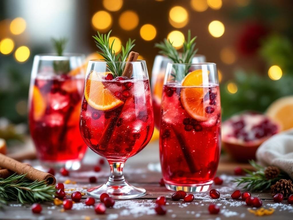 • Garnishes: pomegranate arils, fresh rosemary sprigs, orange twist/wheel, star anise or cinnamon stick